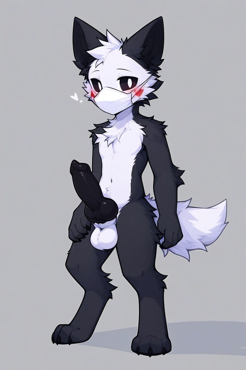 Knotted Penis, Black Fur, Full Body Furry AI Porn