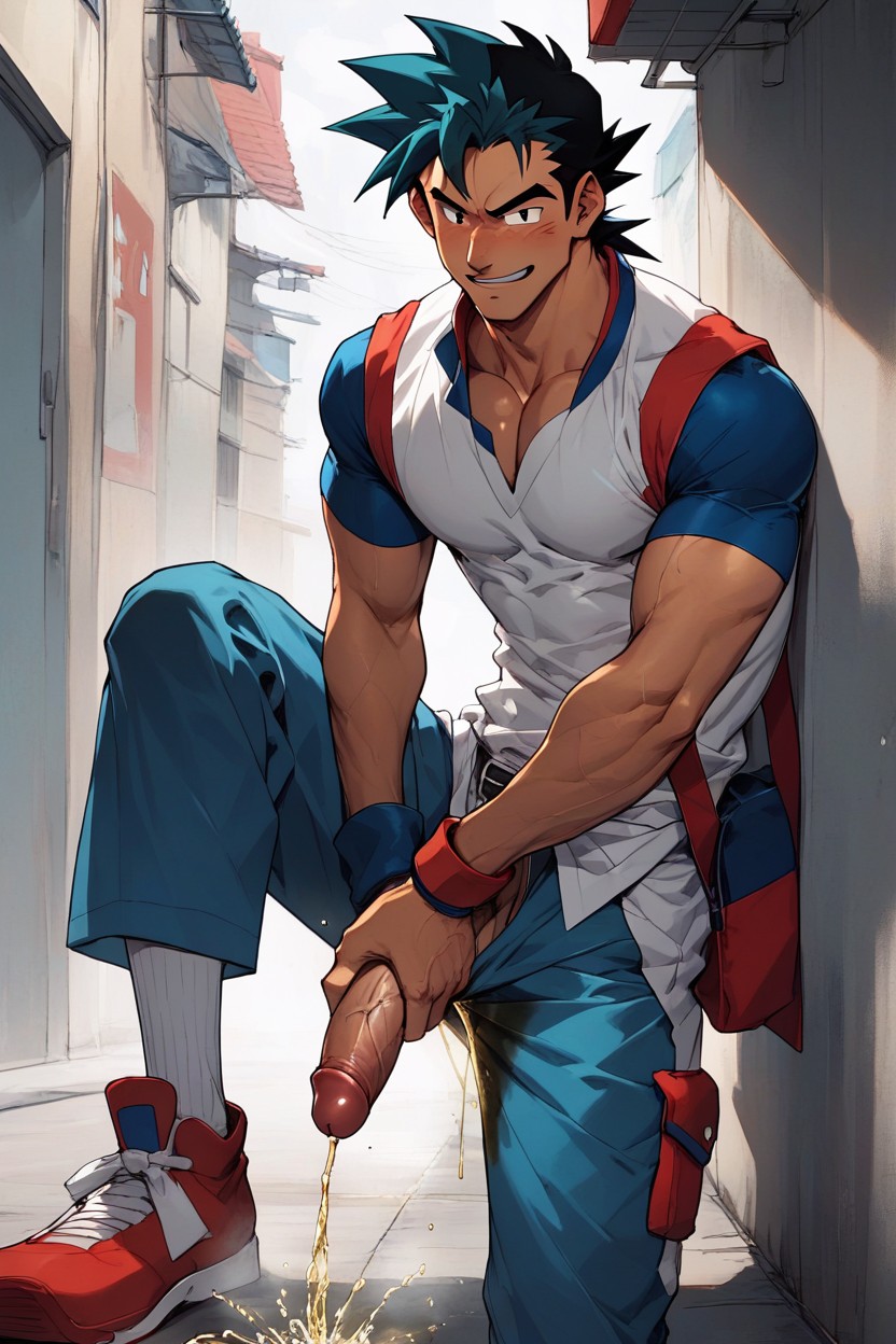Extremely Long Flaccid Veiny Penis Out, Holding Penis, Ash Ketchum Furry AI Porn