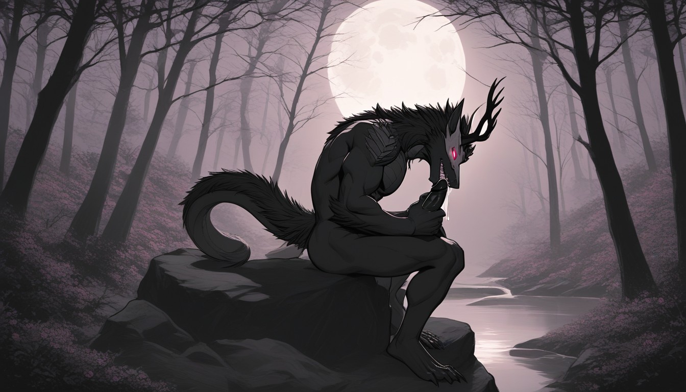 Gay, Wendigo, Sitting On Rock Furry AI Porn
